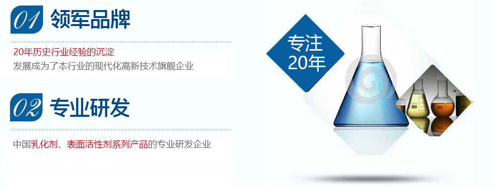 本公司依托淄博的化工區(qū)位優(yōu)勢(shì),掛靠大中專化工院校及科研單位,專心致力于非離子表面活性劑的開(kāi)發(fā)、應(yīng)用,是國(guó)內(nèi)較早從事研究、開(kāi)發(fā)、生產(chǎn)非離子表面活性劑的廠家之一,主要產(chǎn)品有:烷基酚聚氧乙烯醚(OP、NP、TX)系列、脂肪醇聚氧乙烯醚(AEO)系列、(平平加)系列、失水山梨醇脂肪酸酯聚氧乙烯醚(吐溫系列)、失水山梨醇脂肪酸酯(斯盤系列)、椰子油二乙醇酰胺(6501)、滲透劑系列、十二烷基苯磺酸、脂肪醇聚氧乙烯醚AES、油酸、三乙醇胺、椰油酰胺丙基甜菜堿CAB-35、聚醚系列、添加劑系列、聚乙二醇系列、乳化劑酯醚系列等等,產(chǎn)品遠(yuǎn)銷全國(guó)各個(gè)地區(qū),客戶上千余家,乳化劑在用戶中享有很高的聲譽(yù),市場(chǎng)占有率逐年攀升。近年來(lái),企業(yè)...
